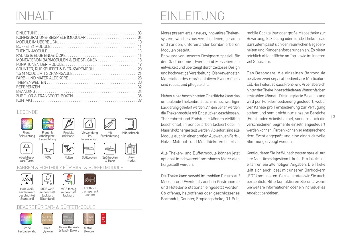 Moree presents a new, innovative bar and buffet system, which consists of different, straight and round modules that can be combined with each other. It was developed by our designers especially for the gastronomy, event and trade fair sector and convinces with timeless design and high-quality workmanship. The materials used for the representative event furniture are robust and easy to clean.