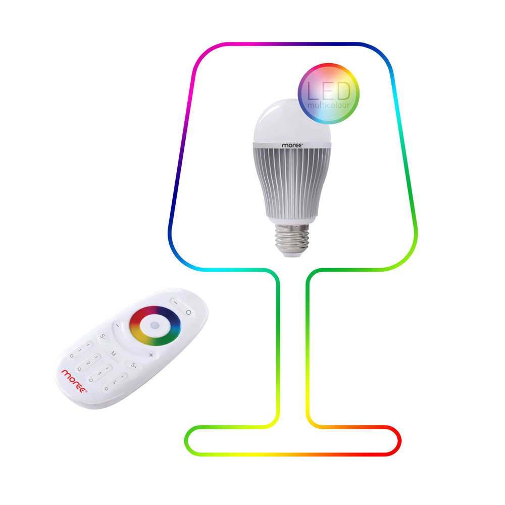 Kit contains: 3x RGBW multicolour bulbs E27 & 1x Moree wireless remote control