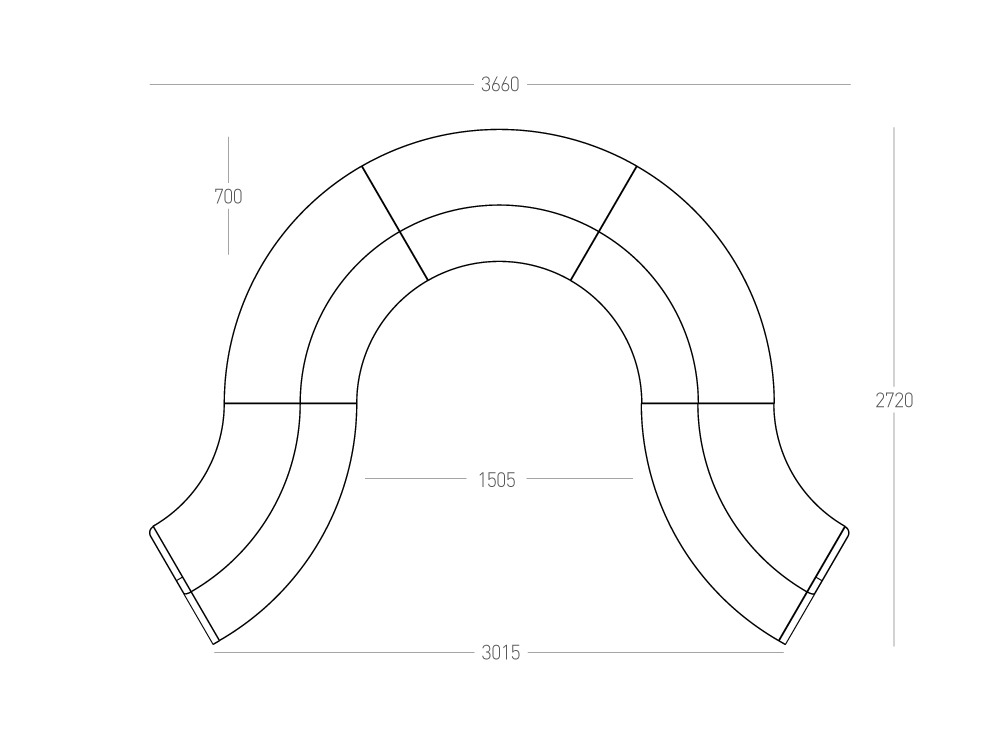 | Dimensions | 3660 x 2720 x H 1050 mm (plus height of the selected foot or wheel) • H 1070 mm (incl. feet H20mm) • H 1110 mm (incl. feet H60mm) • H 1110 mm (incl. wheels H60mm) • H 1150 mm (incl. wheels H100mm) |