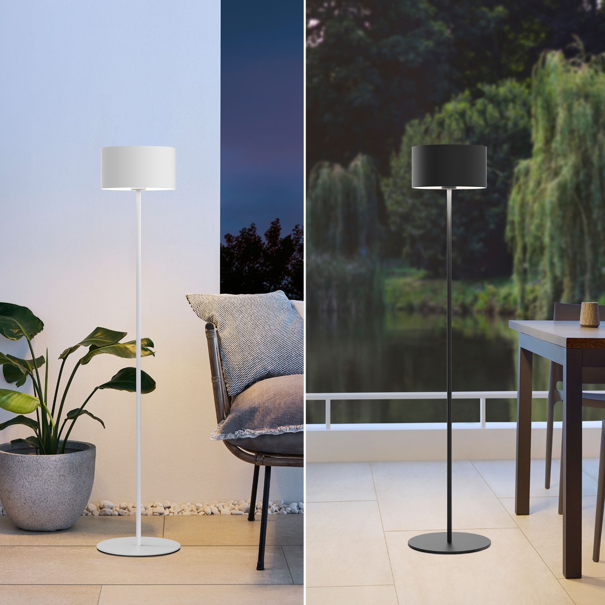 Le lampadaire avec accu en blanc ou anthracite pour l’extérieur. La recharge de l’accu s’effectue via le chargeur.