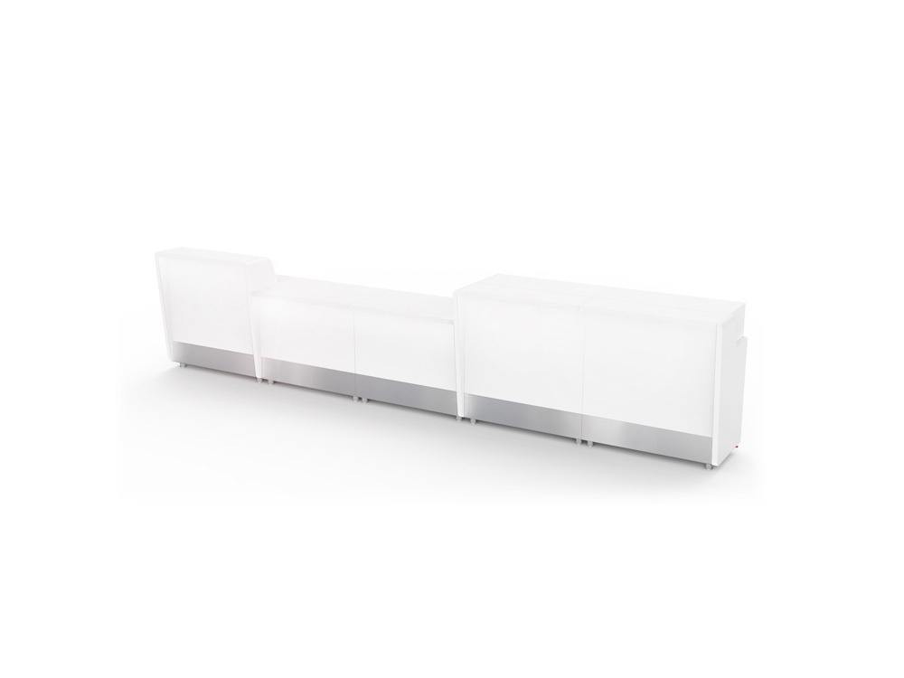 MOREE COMPTEUR à DEL Avec les modules de comptoir Moree, vous pouvez créer vos propres configurations de comptoir, parfaitement adaptées à vos événements et à vos locaux. Tous les modules peuvent être combinés les uns avec les autres. Equipé de deux lumières LED multicolores sur l'avant et l'arrière (plan de travail) du comptoir, qui peuvent être contrôlées ensemble ou séparément, une personnalisation supplémentaire est possible grâce aux couleurs/blancs. Ces fonctions peuvent être commandées via une télécommande à 4 canaux. EXEMPLE DE COMPTOIR MOD 3 - PETIT DÉJEUNER BUFFET L'exemple 3 est un bon exemple de buffet de petit-déjeuner parfait. Il est destiné aux traiteurs, aux hôtels, aux restaurants ou aux événements. Ce compteur est composé de: • Module de 3 x 1 mètre (Mod. 19-01-01) • 2 x pièce d'extrémité Radius gauche (Mod. 19-01-05) ou 2x pièce d'extrémité Edge gauche (Mod. 19-01-31) • 2 x pièce d'extrémité Radius Right (Mod. 19-01-06) ou 2x pièce d'extrémité Edge Right (Mod. 19-01-32) • 2 x module Buffet 86 (Mod. 19-01-07) • 2 x module Buffet 110 (Mod. 19-01-08)