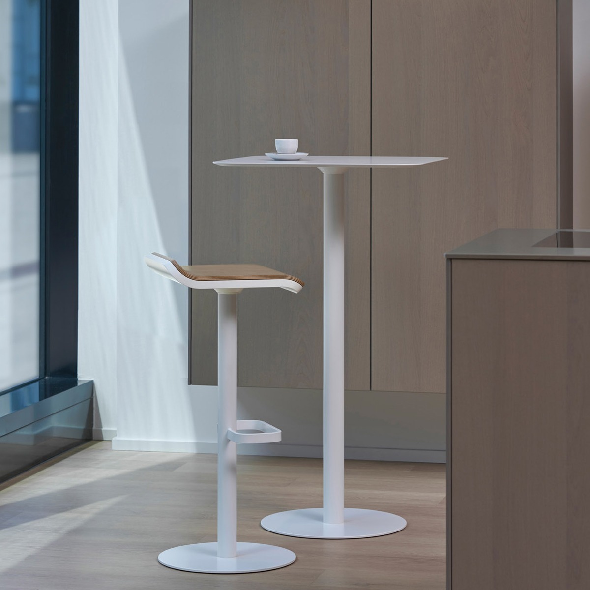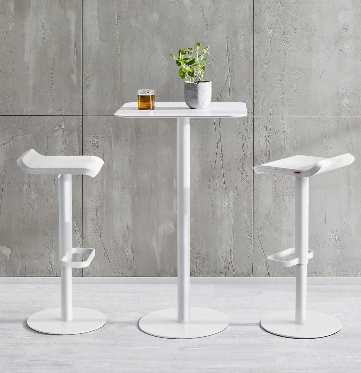 Der quadratische Bar-Tisch ED 105 von Moree wird aus hochwertigen Materialien gefertigt. Die Tischplatte aus Hochdrucklaminat (HPL) brilliert mit der seidig-matten Oberfläche und ruht auf einem weiß-pulverbeschichtetem Metallständer. Die hochqualitative Tischplatte ist leicht zu reinigen und sehr kratzfest. Sie misst 60 x 60 cm und bietet Platz für ein Essen zu zweit, zur Nutzung als Laptop-Arbeitsplatz oder zur Bewirtung einer kleinen Personengruppe mit Getränken und Snacks. ED steht in Küchen, Wohnküchen und Wohnräumen, in Bars, Hotels, Bistros, Lounges, Clubs und dient ebenso als feiner, kommunikativer Platz auf Messeständen, bei geschäftlichen Treffen, Empfängen oder Get-Together.