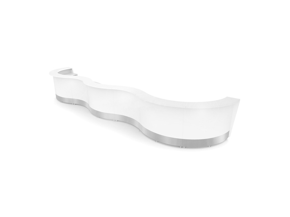 MOREE THEKE Mit den Moree Theken-Modulen können Sie Ihre eigenen Theken-Konfigurationen erstellen, die perfekt auf Ihre Events und Räumlichkeiten zugeschnitten sind. Alle Module können untereinander kombiniert werden. Ausgestattet mit zwei Multicolor LED-Leuchten an der Vorder- und der Rückseite (Arbeitsfläche) der Theke, die zusammen oder separat gesteuert werden können, ist eine weitere Personalisierung durch Farben/weiß möglich. Diese Funktionen können über eine 4-Kanal Fernbedienung gesteuert werden. MODULAR LED-THEKE BEISPIEL 10 Diese Theke besteht aus: • 5 x 60° Modul (Mod. 19-01-04) • 2 x 60° Concave Modul (Mod. 19-01-10) • 1x Endstück Radius Links (Mod. 19-01-05) oder 1x Endstück Edge Links (Mod. 19-01-31) • 1x Endstück Radius Rechts (Mod. 19-01-06) oder 1x Endstück Edge Rechts (Mod. 19-01-32)