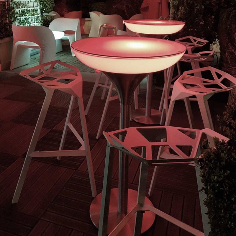 Outdoor Möbel für Gastronomie, Hotellerie und für Privat. Unsere Kollektionen bieten für jeden Bereich etwas ganz Besonderes. Die LED Stehtische aus der Serie “Lounge” und “Studio” erfreuen sich im Hotellerie- und Gastronomiebereich immer größerer Beliebtheit. “Bubble”, “Cube” und “Shark” finden im Privaten wie auch in der Gastronomie großen Anklang. Das stilvolle Design und das innovative LED Multicolor-System dieser hochwertigen Outdoor Möbel verzaubert jeden Außenbereich in ein echtes Wohlfühlparadies. Ob auf dem Rooftop des Design-Hotels oder in Ihrem eigenen Garten, jedes Möbel für sich überzeugt durch Design, Funktion und Innovation. Lassen Sie Ihre Terrasse zum Beispiel in einer der vielen Wunschfarben strahlen. Mit der praktischen Fernbedienung können Sie Farben, Intervall- und Farbintensität auf bis zu 4 verschiedenen Kanälen auf einmal steuern. Wenn Sie sich für eine LED Akku Variante mit wiederaufladbarer Batterie entscheiden, können Sie zudem komplett auf Kabel verzichten und Ihr Möbel an jeden Ort stellen, der Ihnen lieb ist.